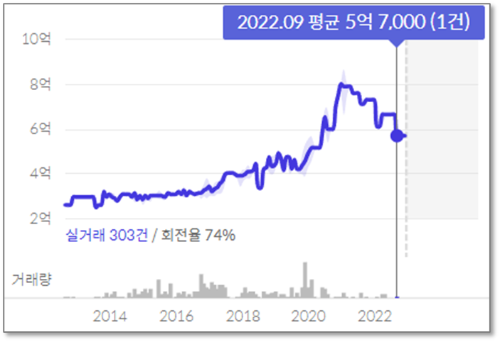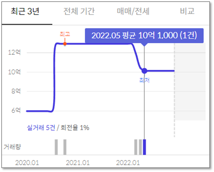 타 아파트에 비하면 하락폭이 작다.
